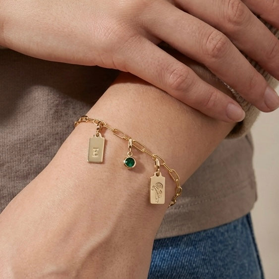 This bracelet is meant to evolve. Start with one meaningful charm and continue adding to your piece as new milestones, memories, and moments unfold. Whether you’re gifting or building your own keepsake, this is jewelry made to be worn—and grown—with intention.