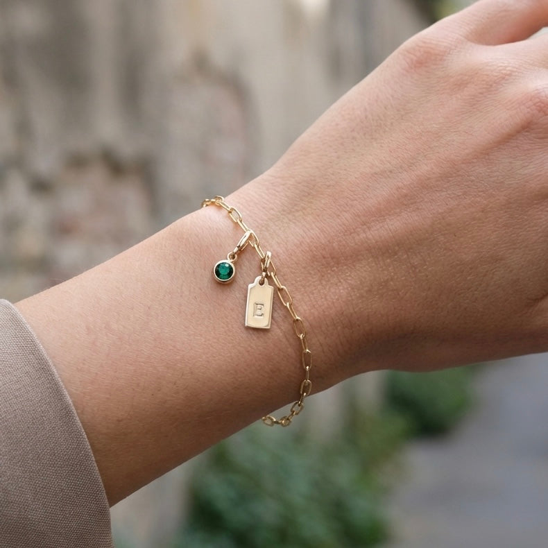 Regular price $42.50Create your own charm bracelet with meaningful symbols, initials, dates, and shapes. This custom charm bracelet is designed to be built, personalized, and worn your way. This paperclip chain bracelet includes your choice of meaningful charms—each one thoughtfully made and finished with its own secure lobster clasp so it’s easy to add, remove, or update over time.