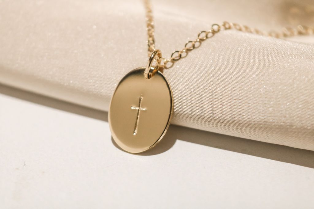 A modern take on a timeless symbol of faith. This oval-shaped necklace features a simple, hand-stamped cross — understated, meaningful, and effortlessly wearable. Crafted in your choice of 14k gold filled or sterling silver, it’s a subtle reminder of hope and strength that pairs beautifully with any style.