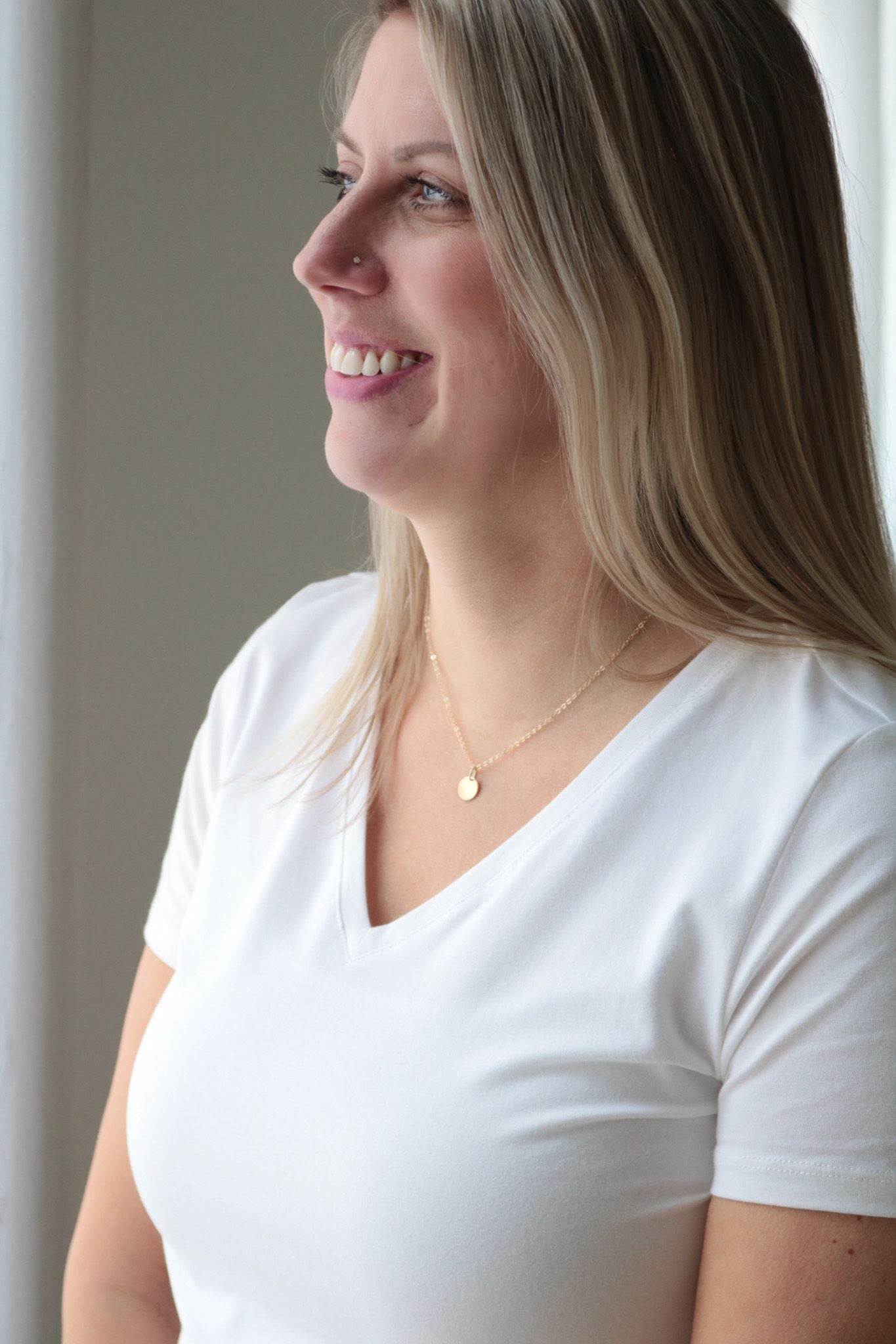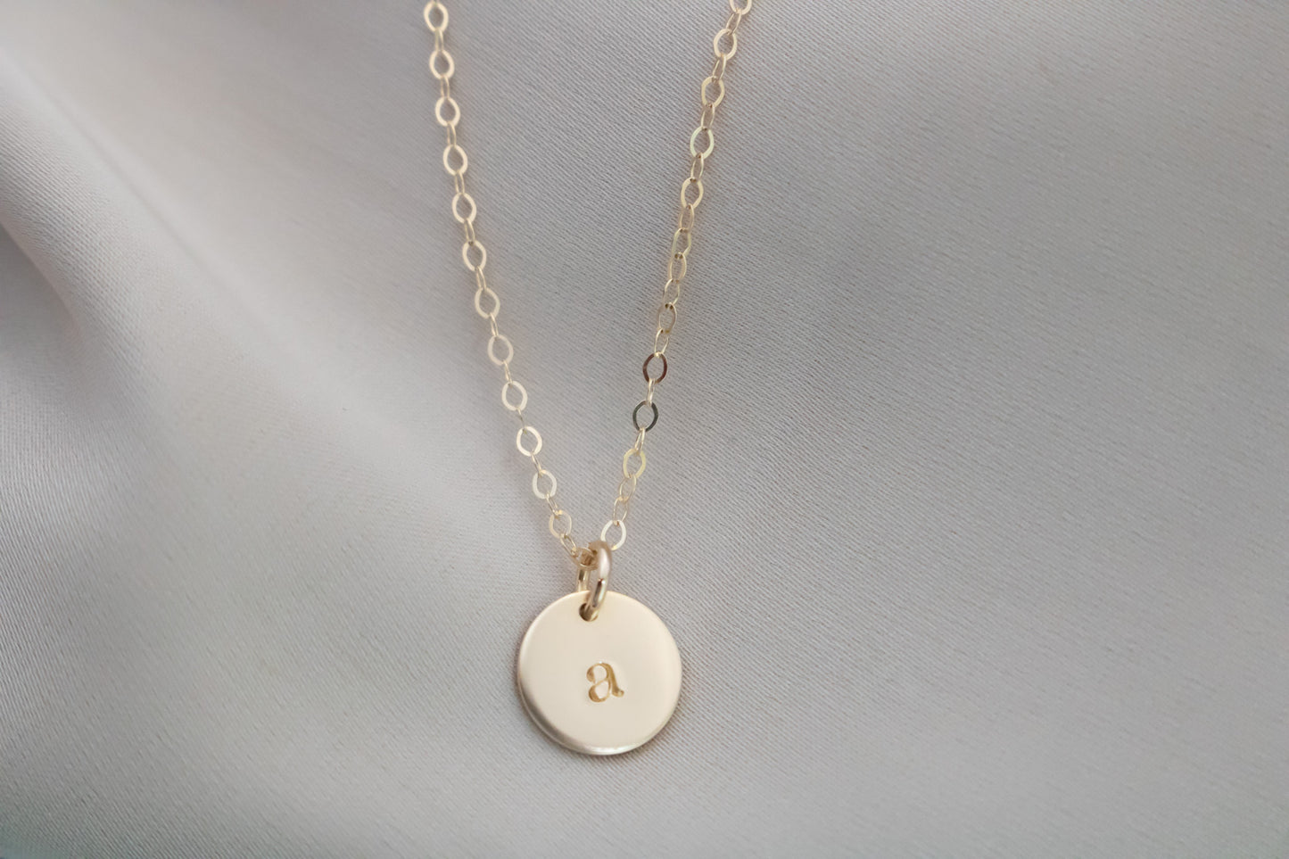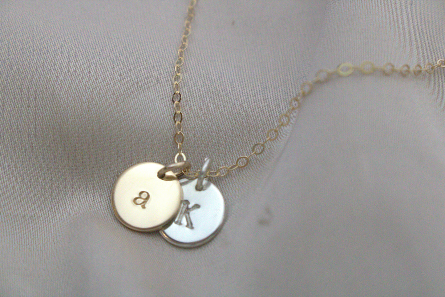 Carry the ones you love close to your heart. This dainty 3/8" handstamped disc necklace can be personalized with up to six initial discs, making it a meaningful keepsake for children, loved ones, or anyone special in your life. Each initial is stamped by hand in delicate detail, creating a piece that’s uniquely yours.