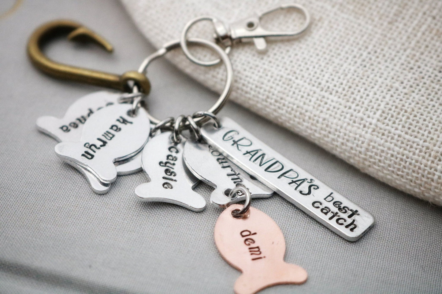 - Includes one aluminum tag stamped with " ________'s best catch". You may personalize this with any name (Grandpa, Pappy, Papa, Daddy, etc)